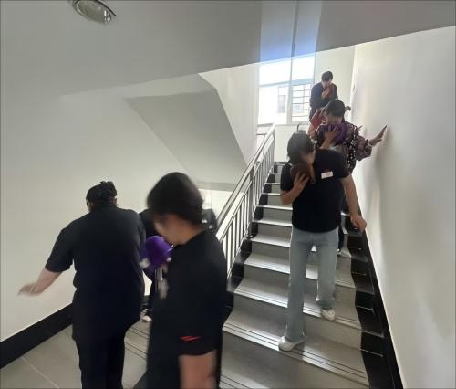 培訓結束后組織賓館人員進行了疏散演練,引導人員沿疏散通道有序撤離,避免發生擁擠、踩踏。并用濕毛巾捂住口鼻,低姿前行,提醒老弱病殘等特殊人群優先疏散。